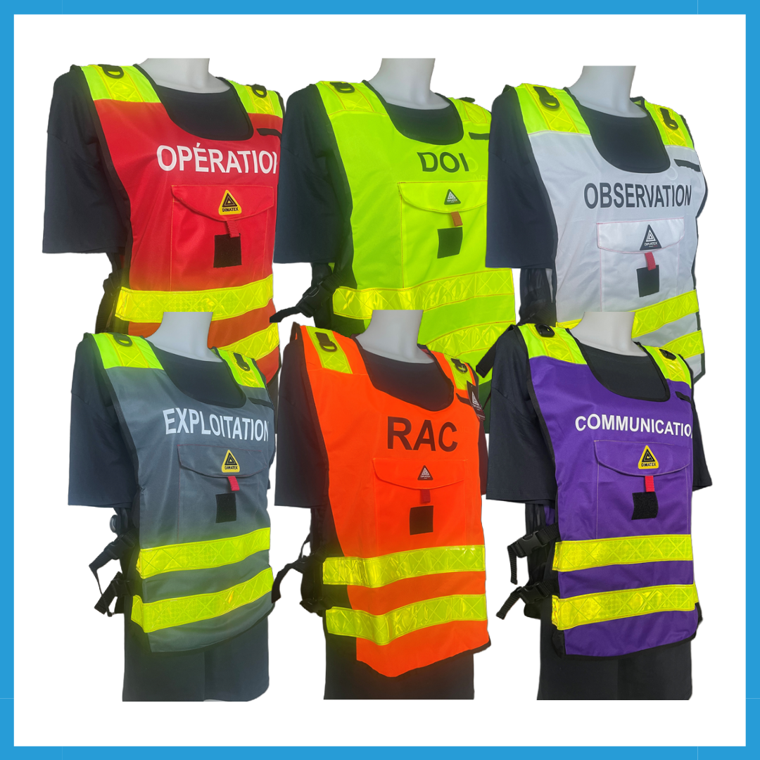 - Dans une configuration Risques industriels (POI), un lot de 4 chasubles : DOI – Opération – Exploitation - Observation